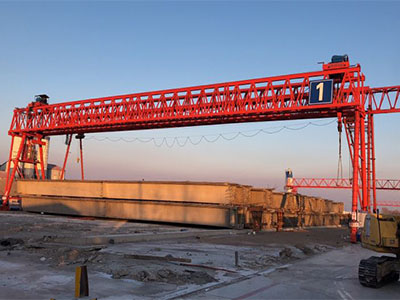 24h咨询热线13569886525 宁夏龙门吊的主体结构用来承受砼箱梁载荷,安装走行系统、天车起升系统、液压系统、电控系统、驾驶室、人行走台等相关机电设备,其主体结构包括4条支腿、端横梁与主梁。根据需要,主梁有单梁与双梁形式,主体结构一般采用抗扭性能好的箱形梁形式。